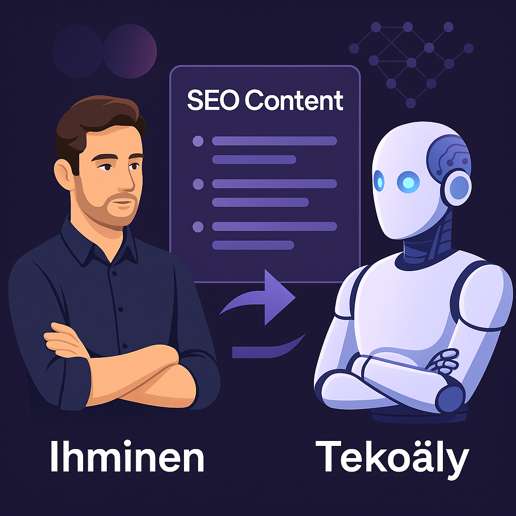 SEOptimointi yhdistää tekoälyn ja asiantuntemuksen – kustannustehokkaasti ja selkeällä prosessilla.